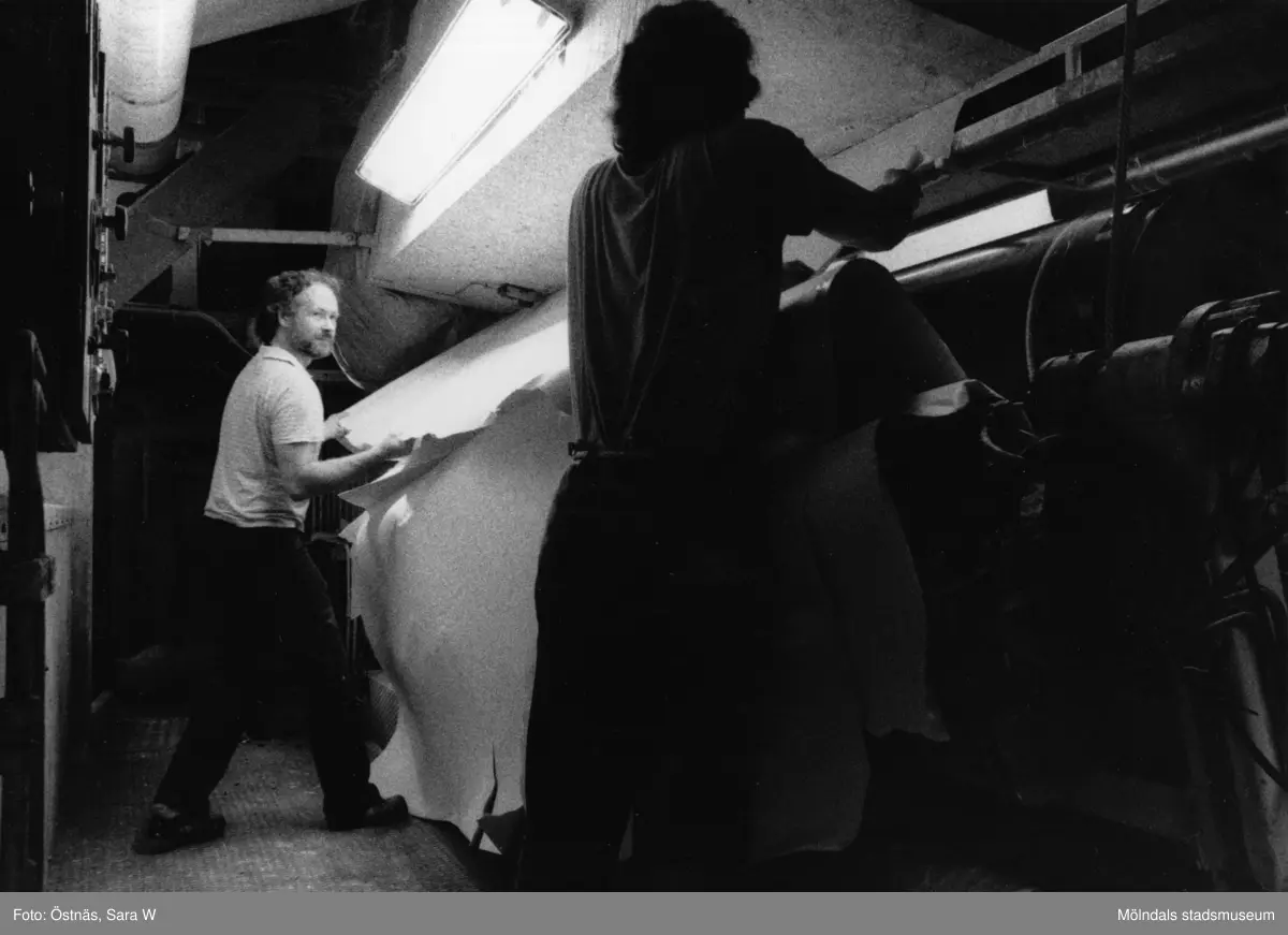 Juris Kuvalds i arbete vid banbrott på pappersbruket Papyrus i Mölndal, år 1990.