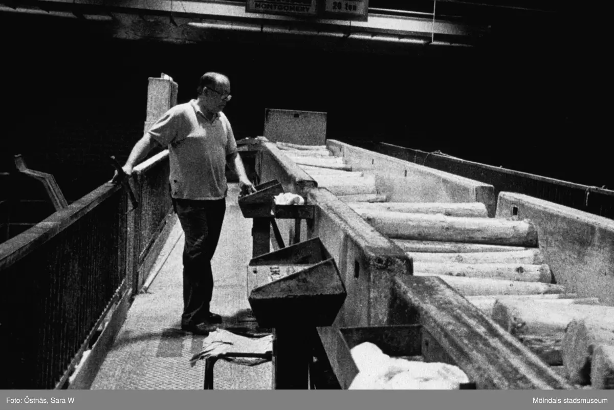 Eero Pikkuhookana övervakar massavedstransport på pappersbruket Papyrus i Mölndal, år 1990.