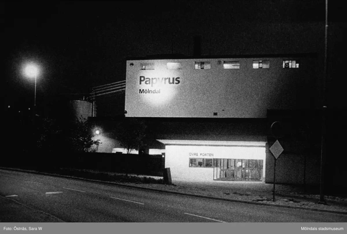 Övre porten till pappersbruket Papyrus vid Kvarnbygatan i Mölndal, år 1990.