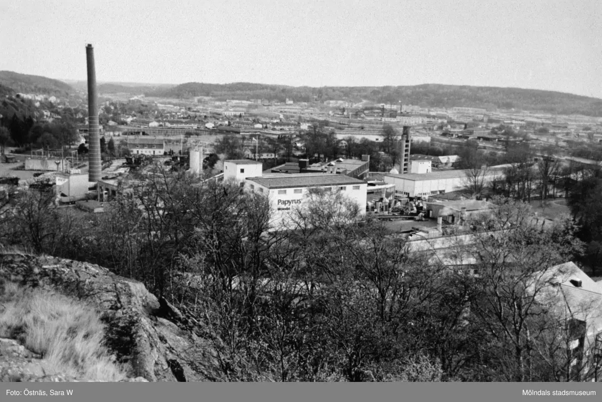 Vy över pappersbruket Papyrus fabriksområde i Mölndal, år 1990.