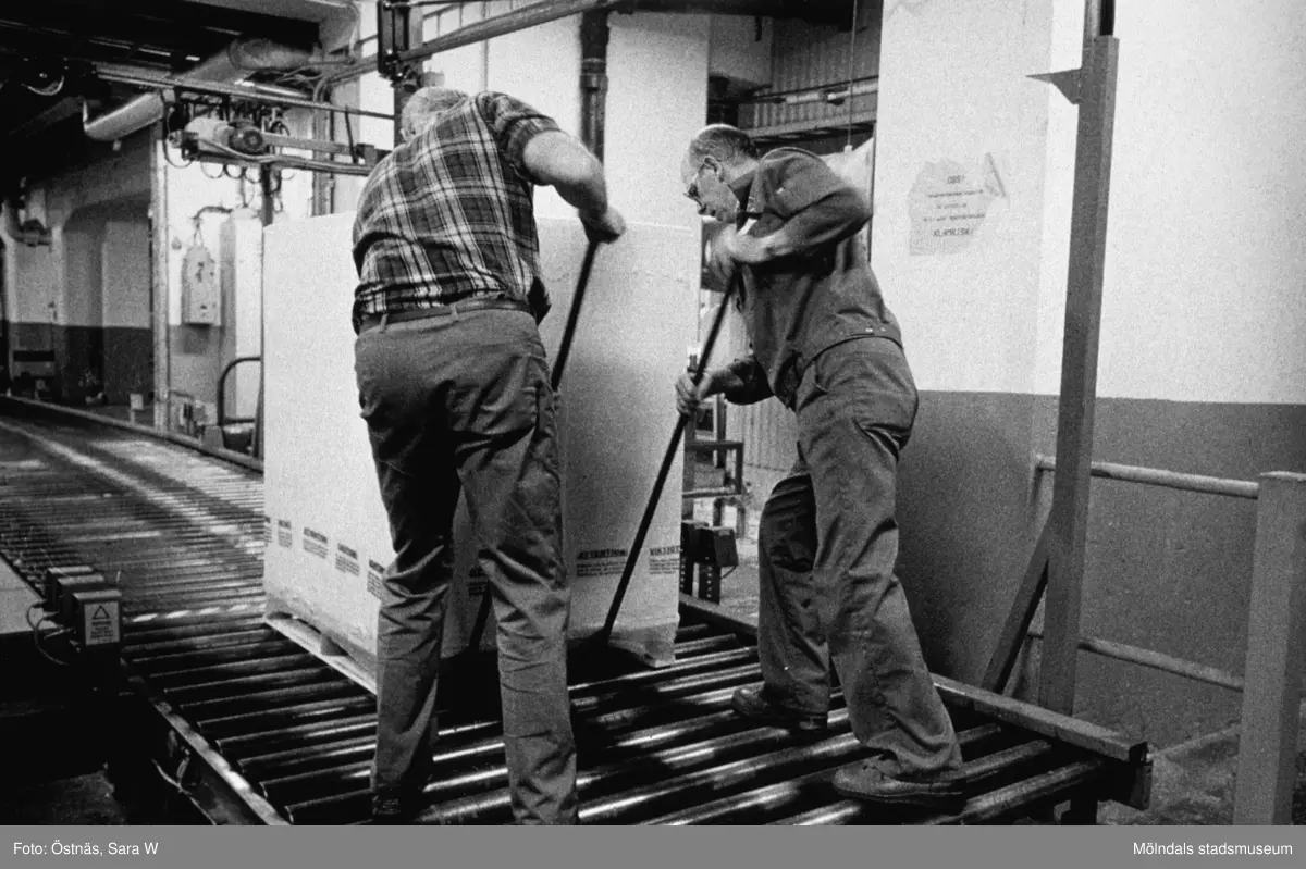 Gotthard Olsson och Tage Carlsson i arbete på pappersbruket Papyrus i Mölndal, år 1990.