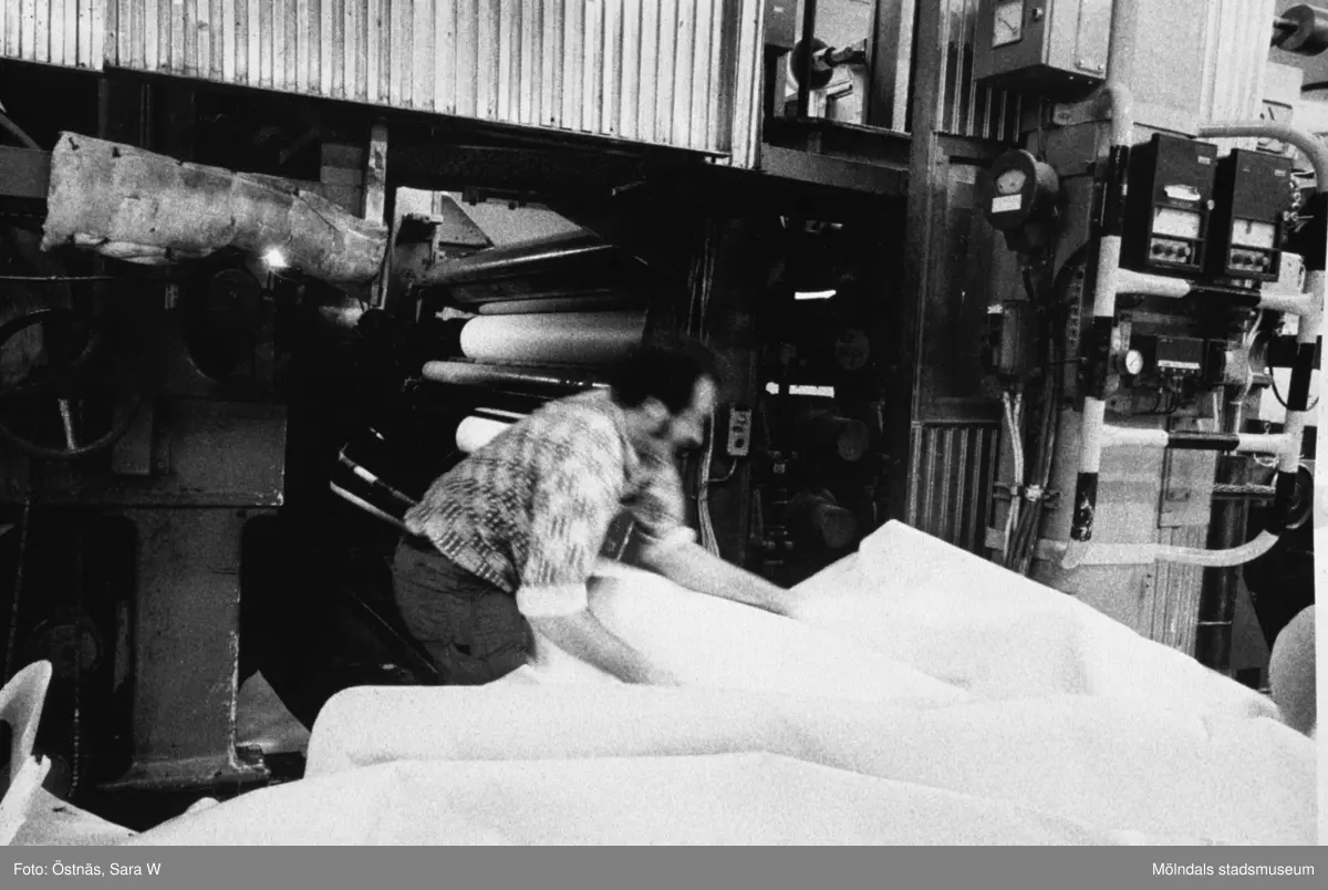 Aarno Aspbäck i arbete vid banbrott på pappersbruket Papyrus i Mölndal, år 1990.