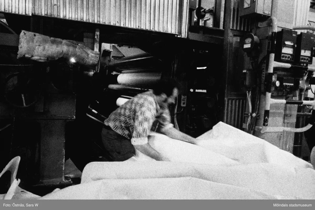 Aarno Aspbäck i arbete vid banbrott på pappersbruket Papyrus i Mölndal, år 1990.
