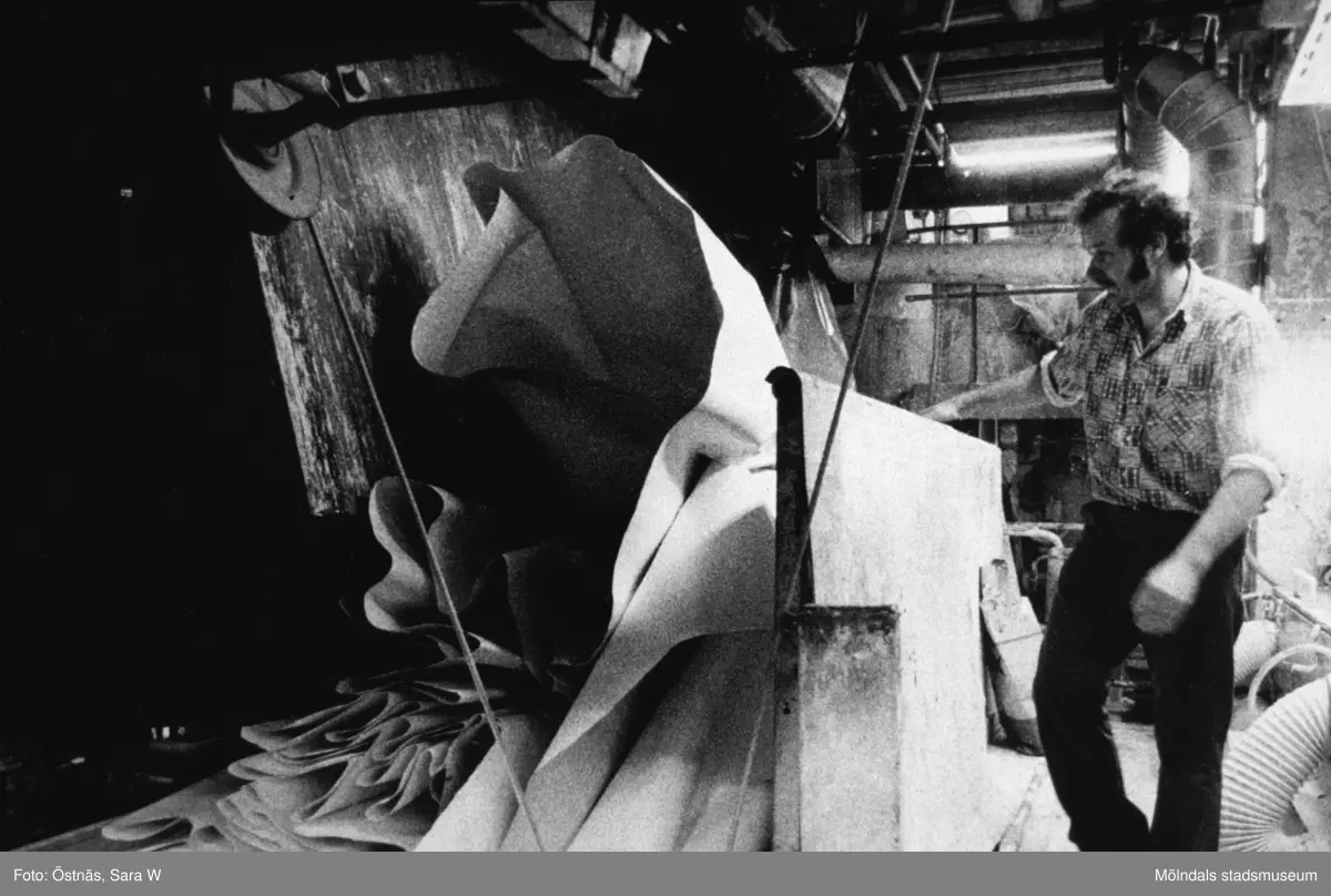 Aarno Aspbäck i arbete vid banbrott på pappersbruket Papyrus i Mölndal, år 1990.