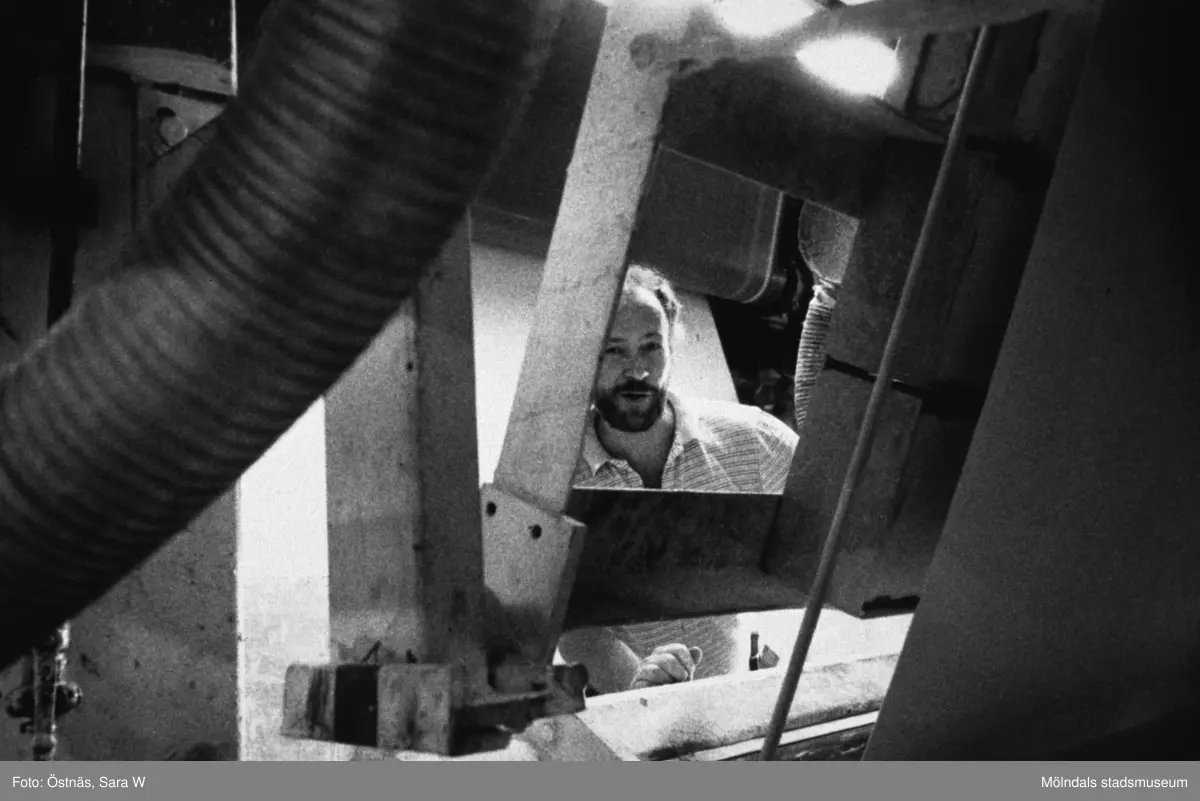 Juris Kuvalds i arbete vid maskin på pappersbruket Papyrus i Mölndal, år 1990.