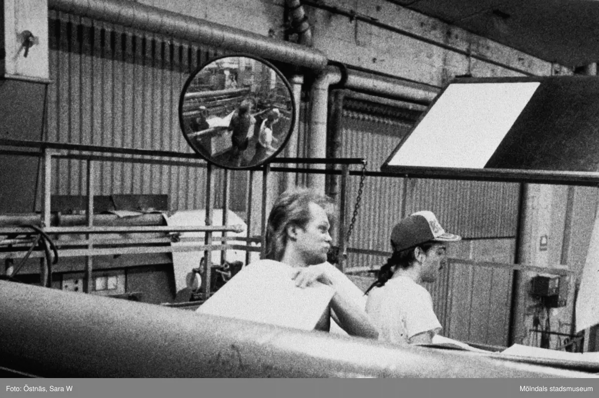 Män i arbete på pappersbruket Papyrus i Mölndal, år 1990. Mannen till vänster är Arne Gullberg.