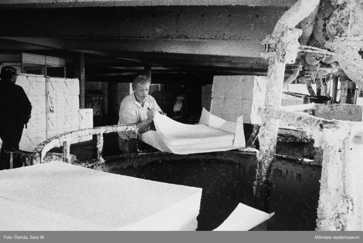 Erik Rotgren och Stig Andersson i arbete på pappersbruket Papyrus i Mölndal, år 1990.