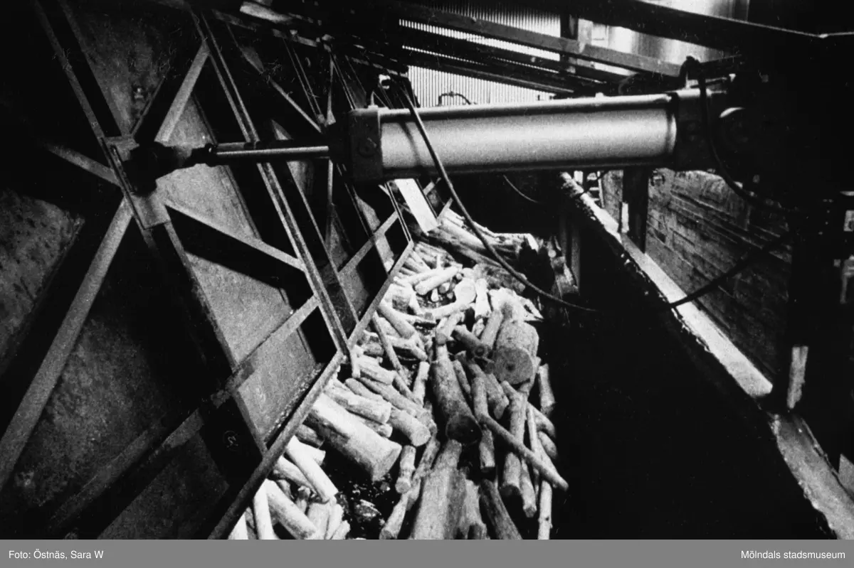 Massaved på väg mot sliperiet på pappersbruket Papyrus i Mölndal, år 1990.