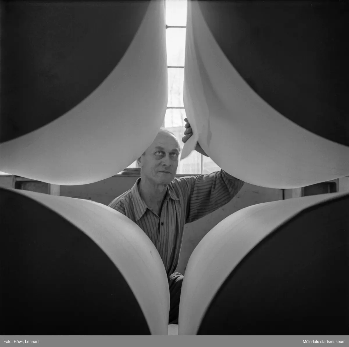 Man i arbete vid klipp nr 1 på pappersbruket Papyrus i Mölndal, 6/5 1955.