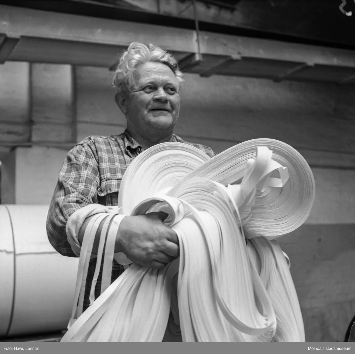 Man i arbete vid rullmaskin nr 3 på pappersbruket Papyrus i Mölndal, 6/5 1955.