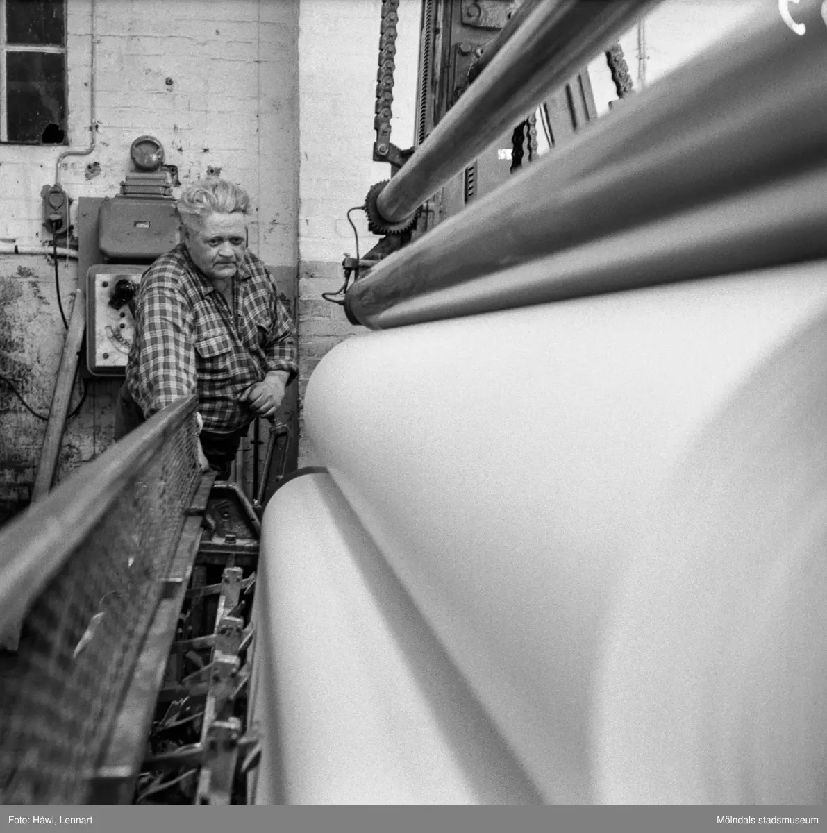 Man i arbete vid maskin på pappersbruket Papyrus i Mölndal, 6/5 1955.