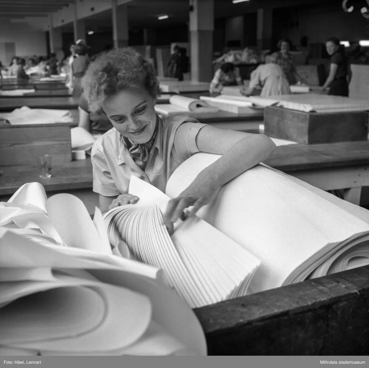 Kvinna i arbete i sortersalen på pappersbruket Papyrus i Mölndal 6/5 1955.