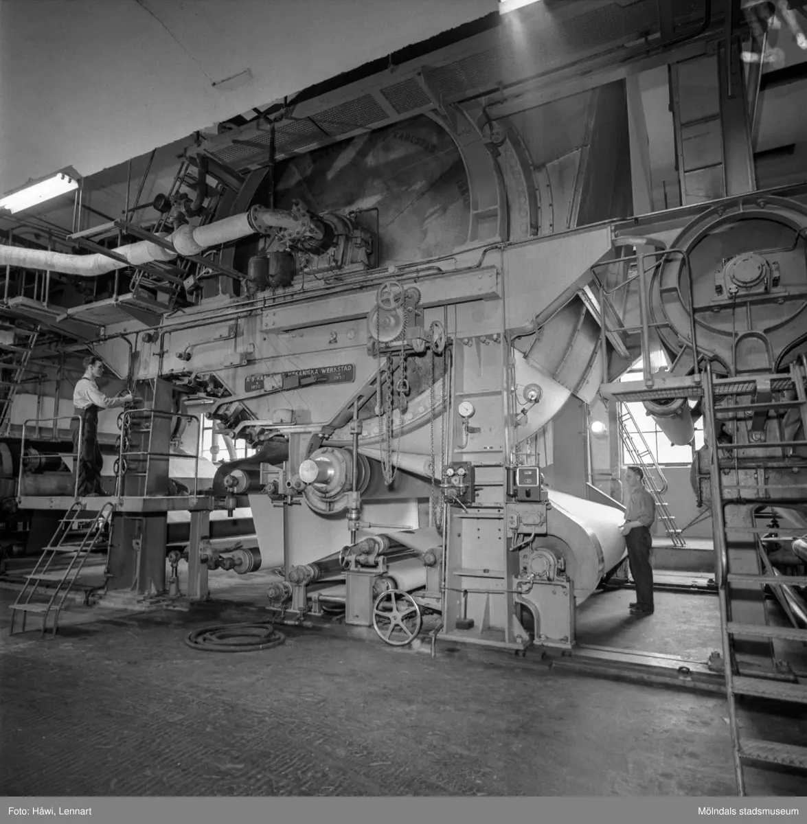 Män i arbete vid PM3 på pappersbruket Papyrus i Mölndal, 13/5 1955.