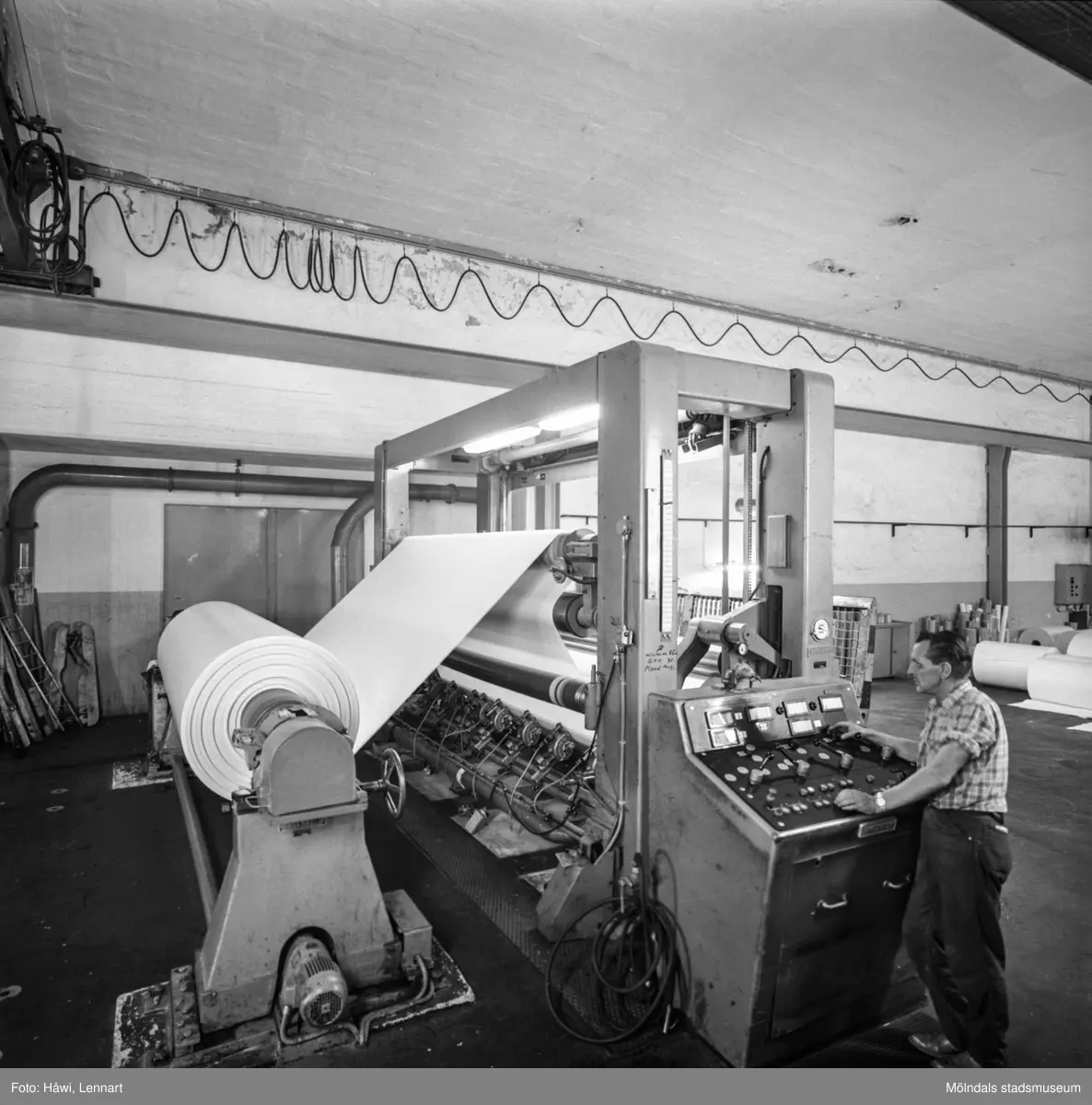 Man i arbete vid rullmaskin nr 5 på pappersbruket Papyrus i Mölndal, 5/9 1968.