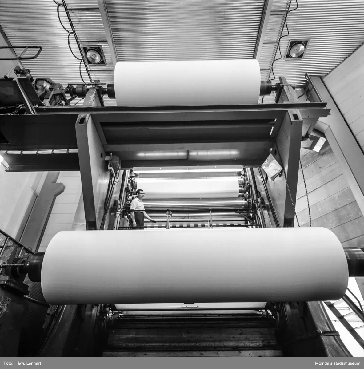 Man i arbete vid glätt nr 5 på pappersbruket Papyrus i Mölndal, 5/9 1968.