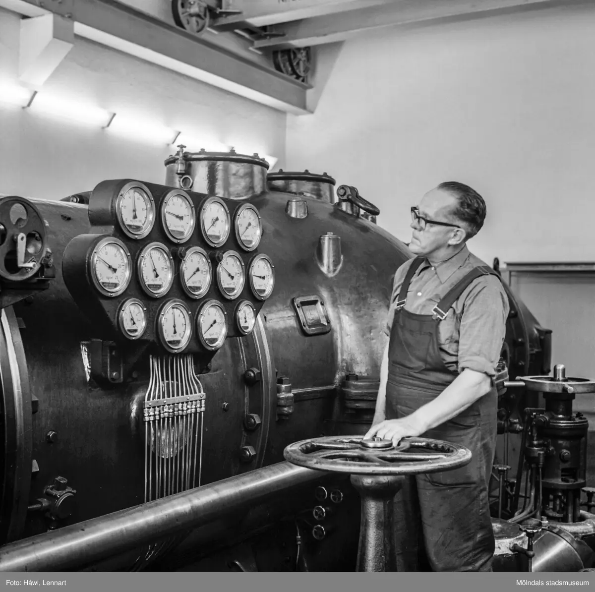 Man i arbete vid STAL-turbin på pappersbruket Papyrus i Mölndal, 5/9 1968.