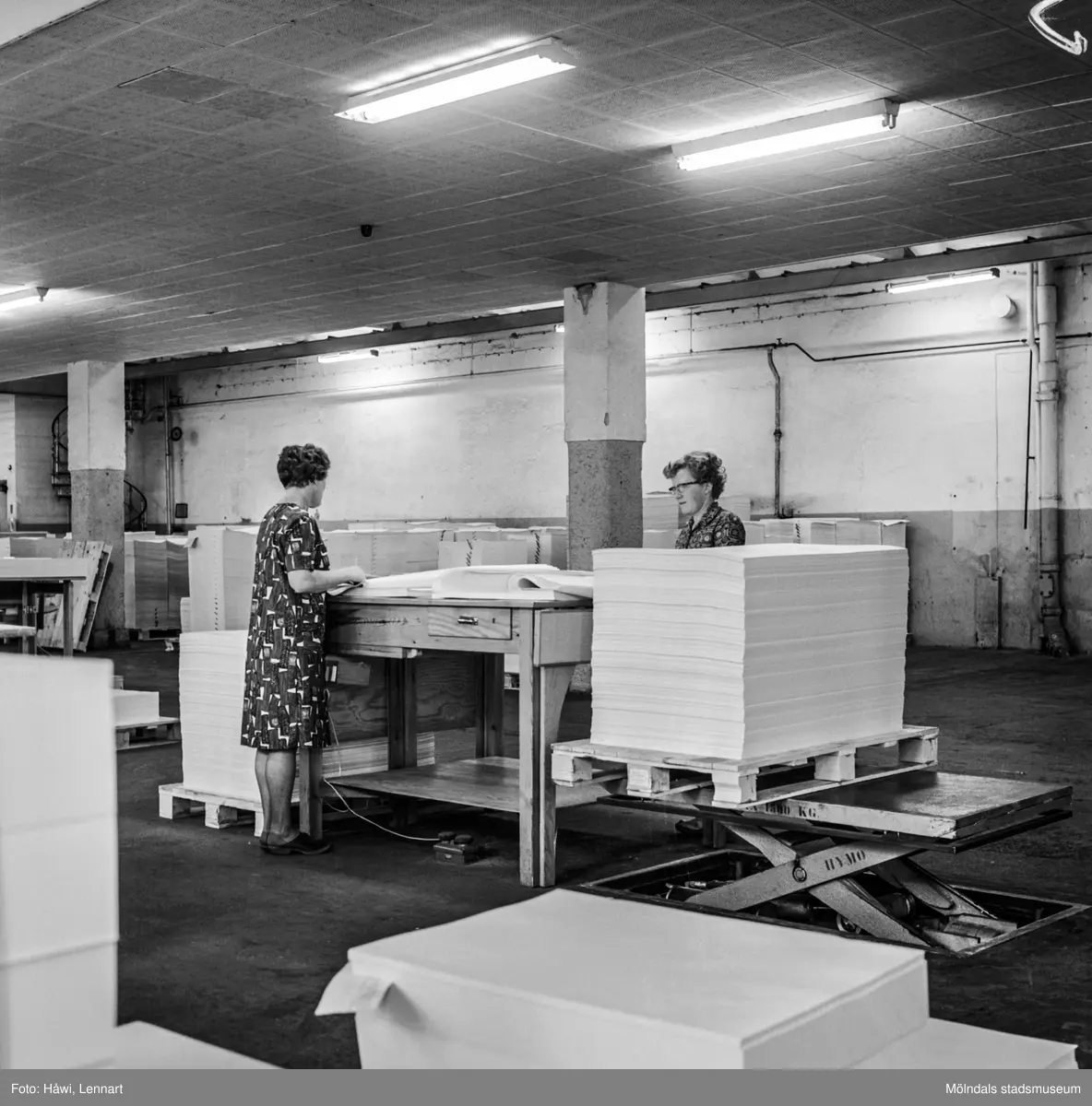 Kvinnor i arbete med att sortera papper på pappersbruket Papyrus i Mölndal, 8/10 1968.