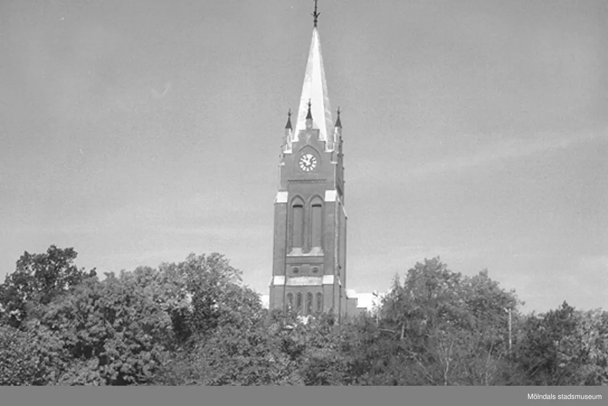 Fässbergs kyrka. Mölndalsbro i dag - ett skolpedagogiskt dokumentationsprojekt på Mölndals museum under oktober 1996. 1996_1079-1097 är gjorda av högstadieelever från Kvarnbyskolan 9C, grupp 4. Se även 1996_0913-0940, gruppbilder på klasserna 1996_1382-1405 samt bilder från den färdiga utställningen 1996_1358-1381.