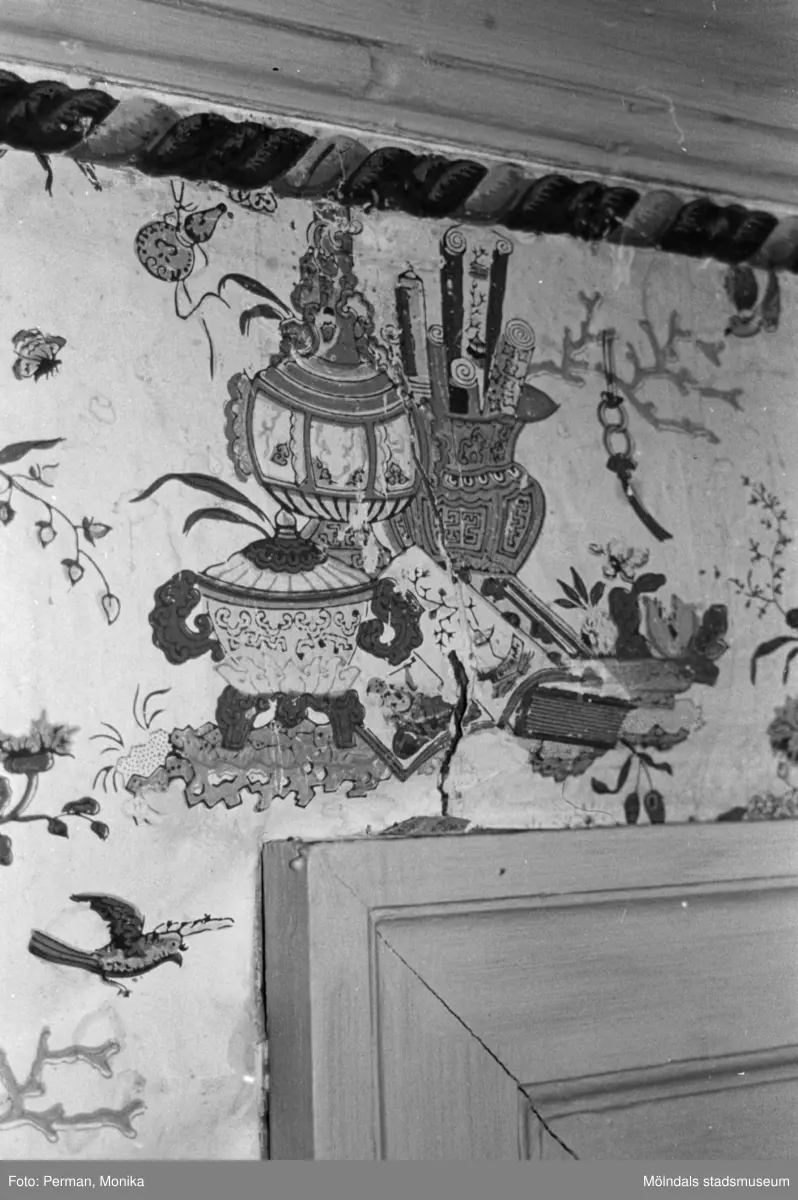 Antikvarisk storstädning på Gunnebo slott 1992. En väggmålning av kinesisk karaktär.