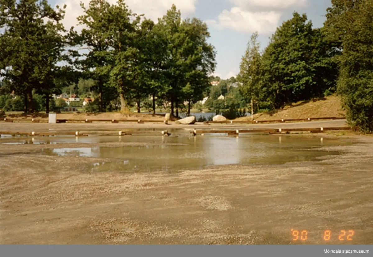 Vattensamling vid parkering. Nära Gunnebo slott, augusti -90.