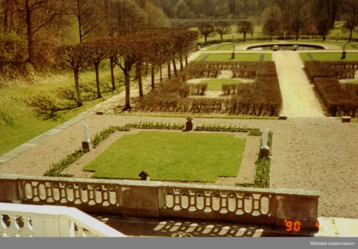 Vy på Gunnebo slottsparks vänstra del mot söder, april 1990.