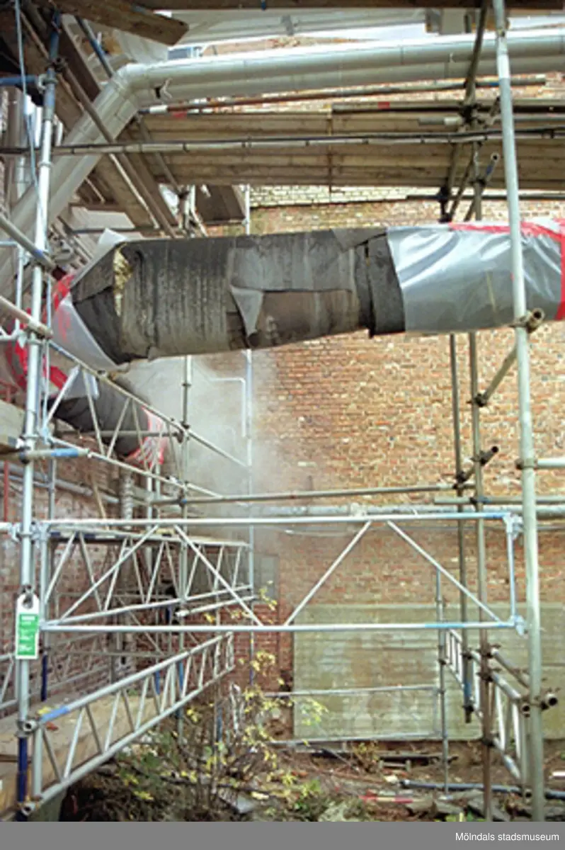 Byggnadsdokumentation av Papyrusområdet. Äldre murfasad med gult tegel, sett från söder. Papyrusområdet, oktober 1998.