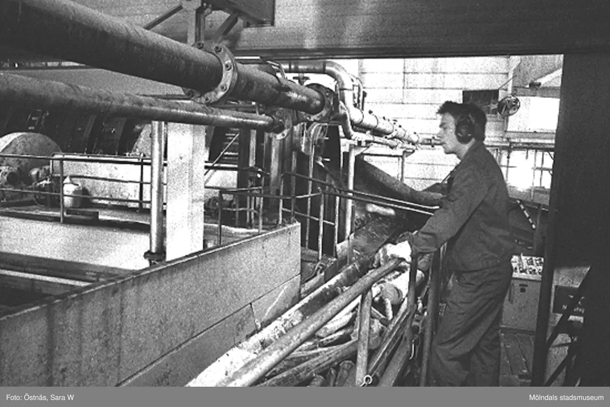 Bilden ingår i serie från produktion och interiör på pappersindustrin Papyrus, 1980-tal.
