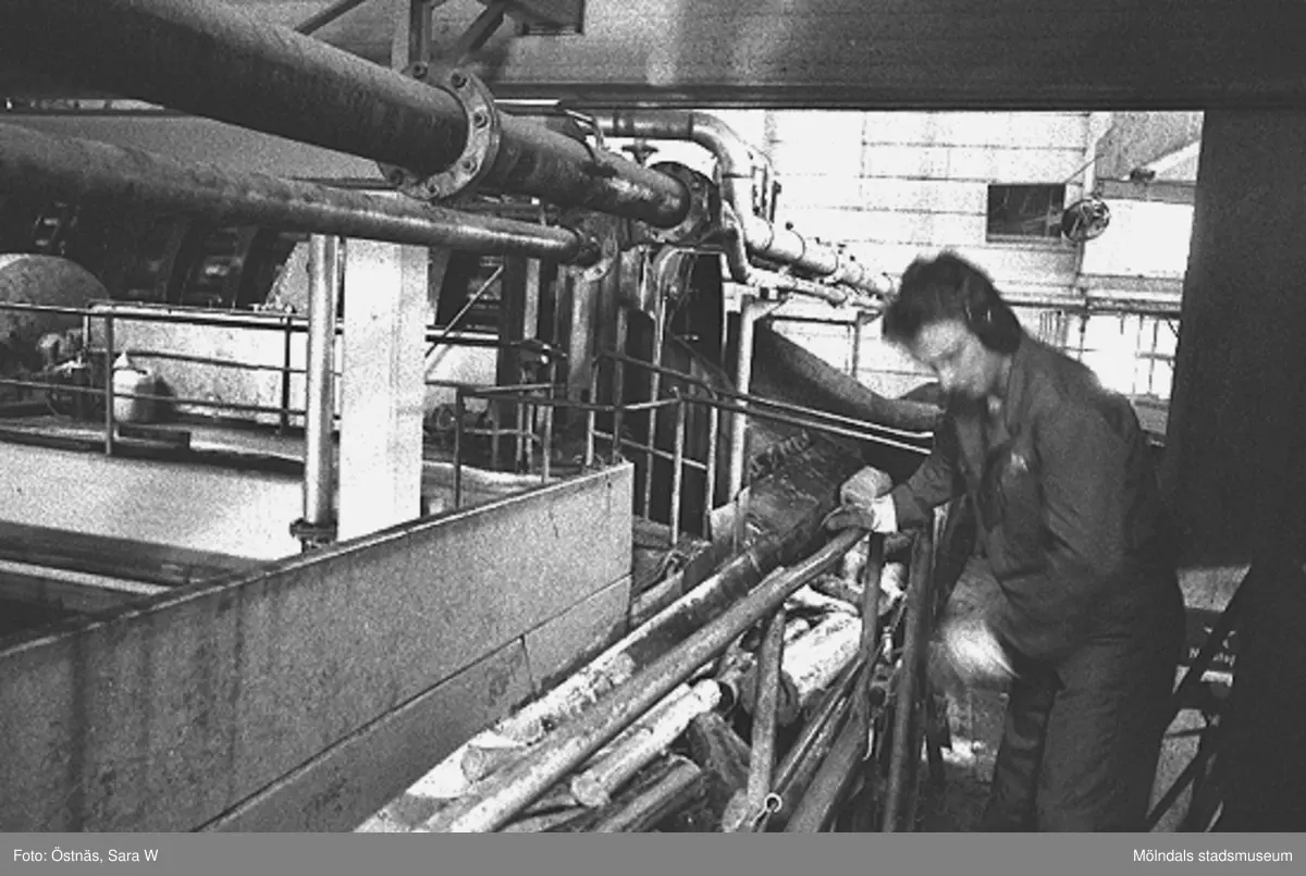 Bilden ingår i serie från produktion och interiör på pappersindustrin Papyrus, 1980-tal.