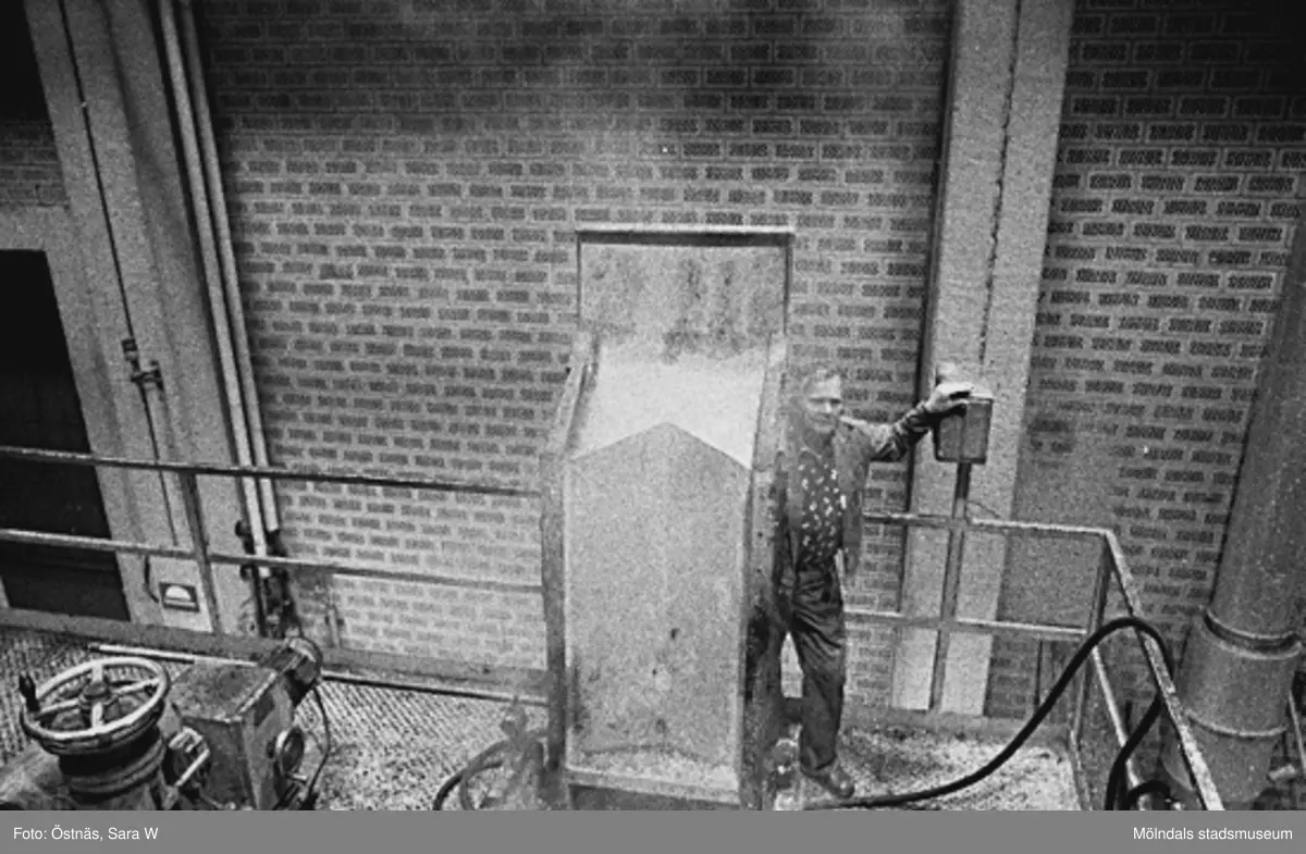 Bilden ingår i serie från produktion och interiör på pappersindustrin Papyrus, 1980-tal.