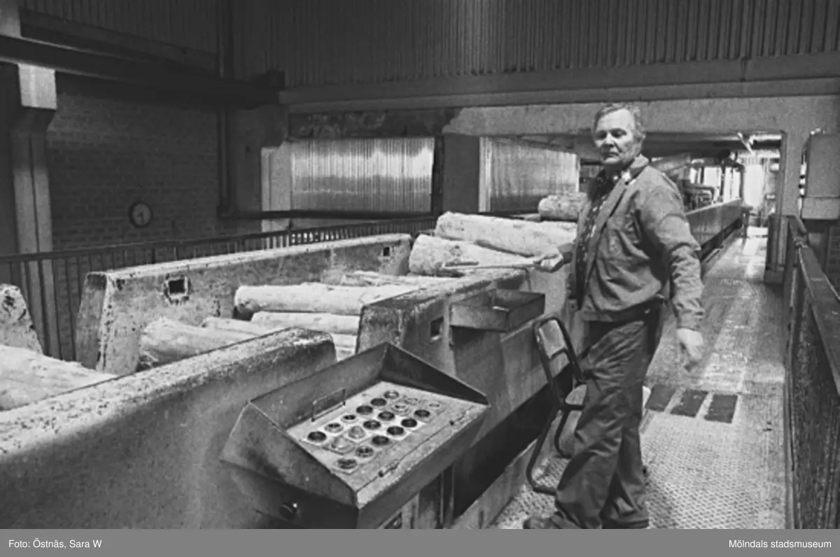 Bilden ingår i serie från produktion och interiör på pappersindustrin Papyrus, 1980-tal.