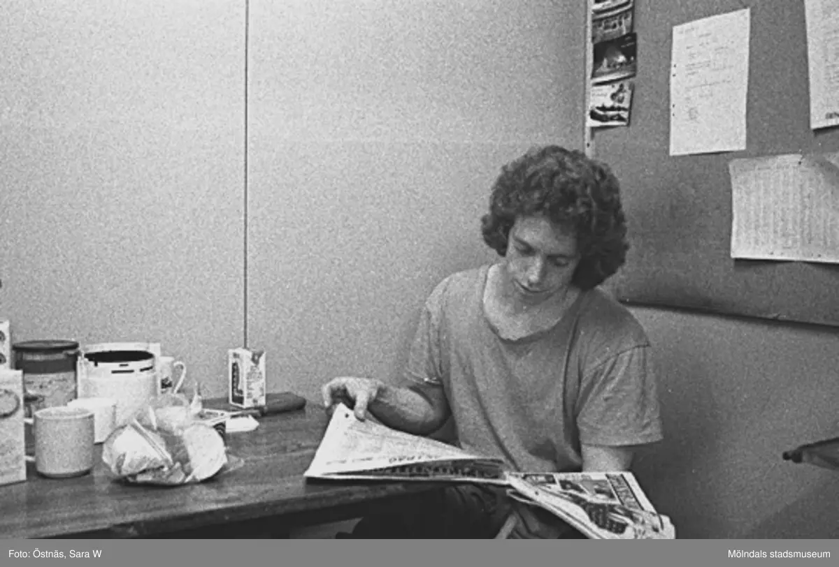 Bo Ternmalm sitter och läser en tidning i personalrummet.