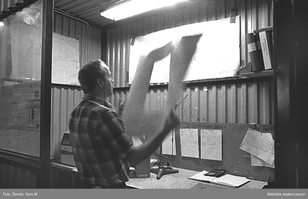 Bilden ingår i serie från produktion och interiör på pappersindustrin Papyrus, 1980-tal.