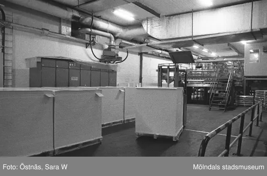 Bilden ingår i serie från produktion och interiör på pappersindustrin Papyrus, 1980-tal.
