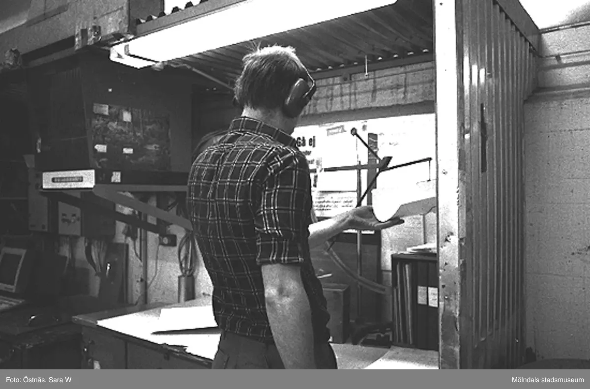 Bilden ingår i serie från produktion och interiör på pappersindustrin Papyrus, 1980-tal.