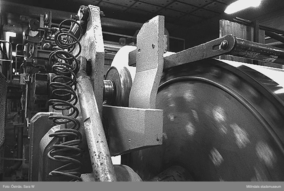 Bilden ingår i serie från produktion och interiör på pappersindustrin Papyrus, 1980-tal.