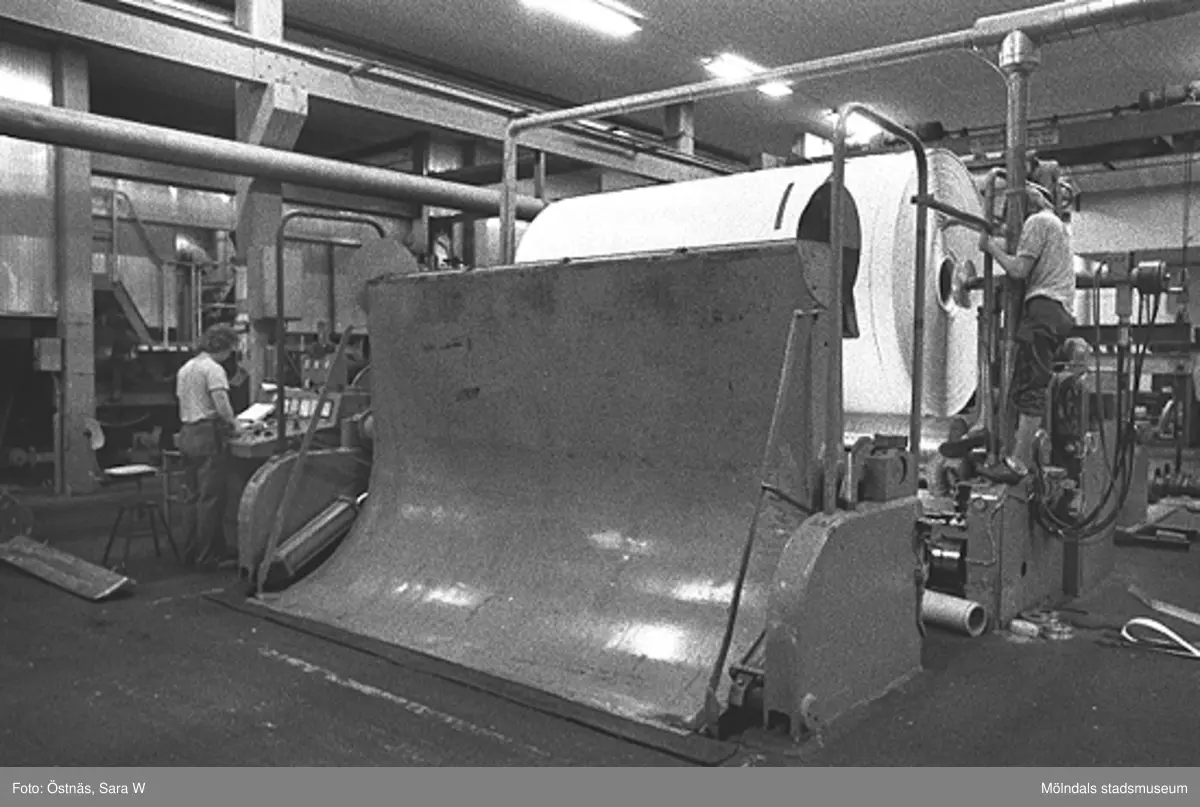 Bilden ingår i serie från produktion och interiör på pappersindustrin Papyrus, 1980-tal.