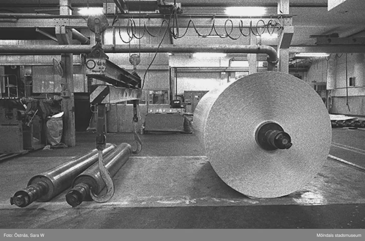 Bilden ingår i serie från produktion och interiör på pappersindustrin Papyrus, 1980-talet.
