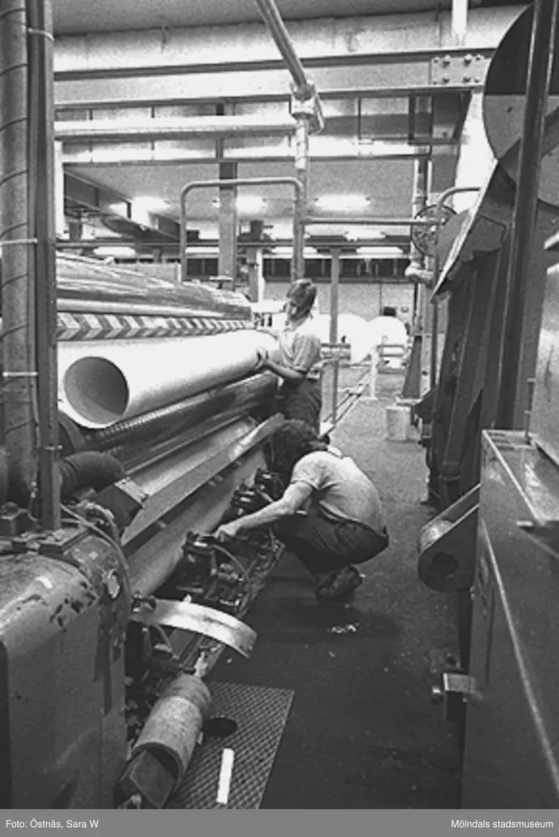 Bilden ingår i serie från produktion och interiör på pappersindustrin Papyrus, 1980-tal.