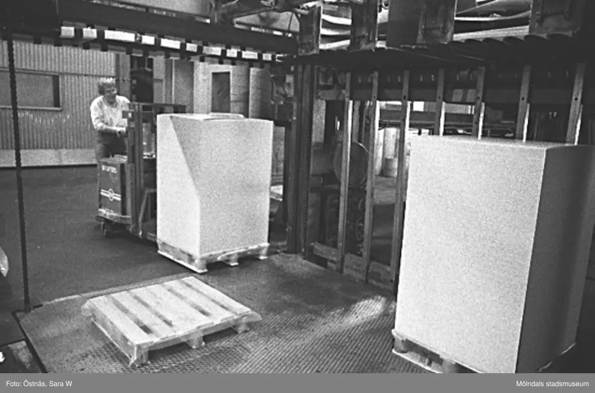 Bilden ingår i serie från produktion och interiör på pappersindustrin Papyrus, 1980-tal.