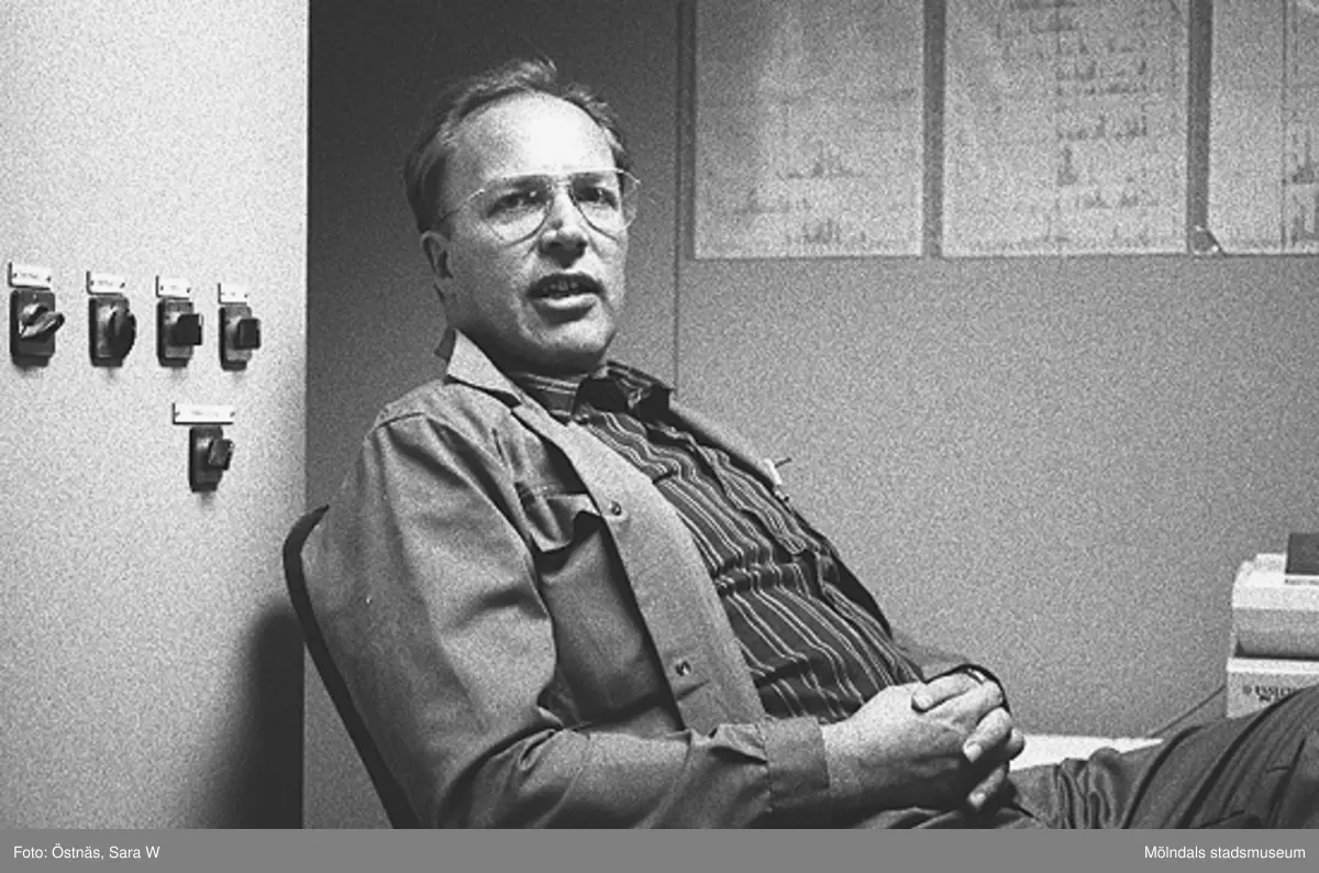 Keijo Ketolainen i pappersfabriken, 1980-tal. Bilden ingår i serie från produktion och interiör på pappersindustrin Papyrus.