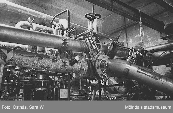Interiördetalj från pappersfabriken; rör och ventiler, 1980-tal.