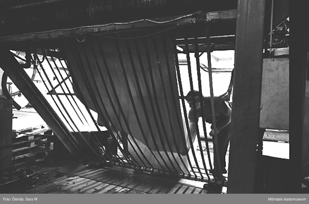 Stefan Roslund i arbete vid pappersfabriken, 1980-tal.