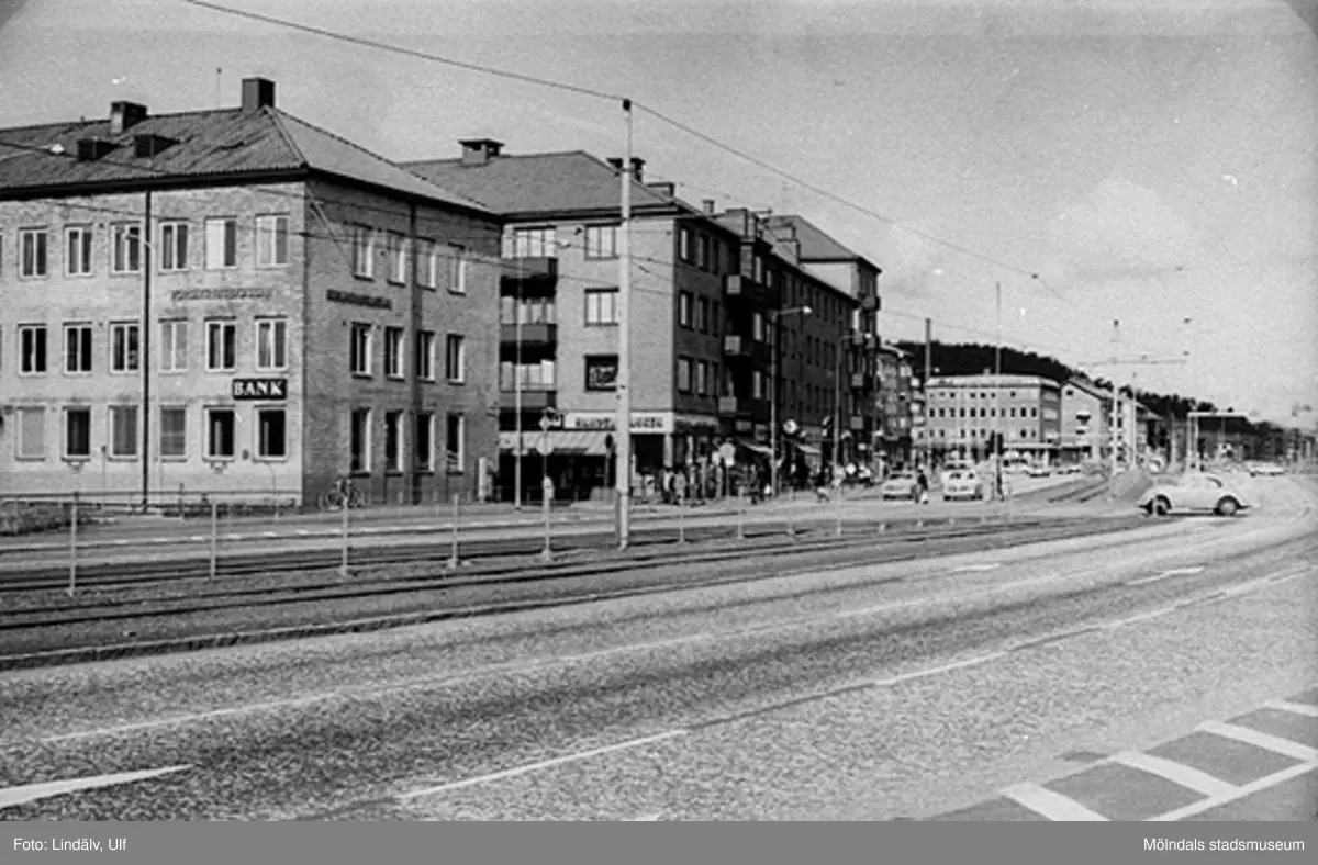 Hantverkshuset (Frölundagatan 1/Kungsbackavägen 2), Centrumhuset (idag: Göteborgsvägen 1-5) och Folkets hus (Göteborgsvägen 19-21), 1960-tal.