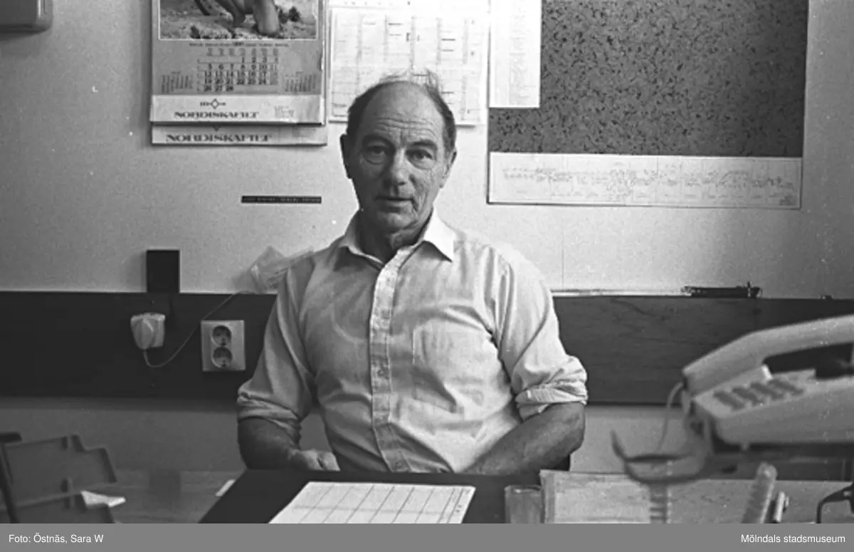 Förman Erik Öberg som arbetar i "Kartongen", 1980-tal.