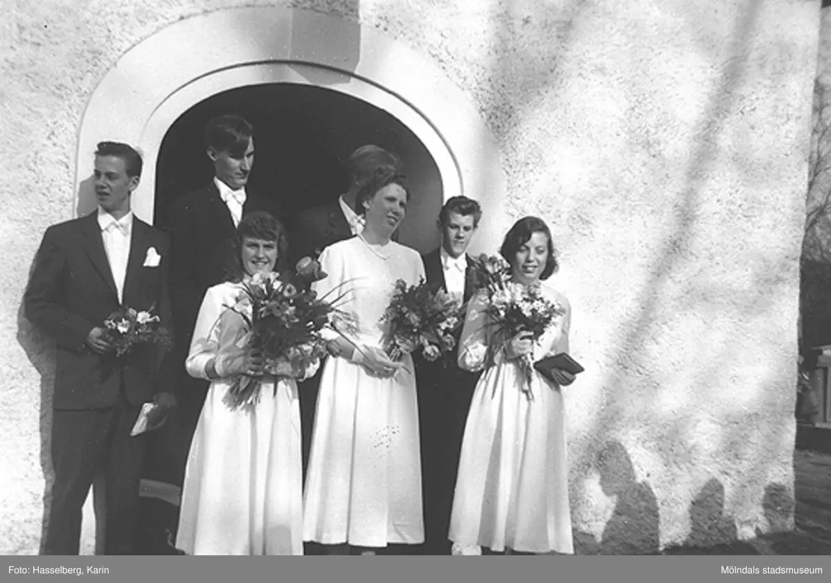 Konfirmander från Skolhemmet Stretered utanför Kållereds kyrka, 1958.