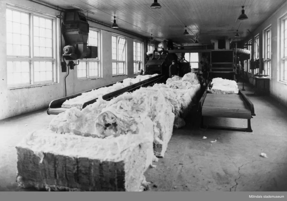Balbrytning av bomull i spinneriet på Krokslätts fabrik.