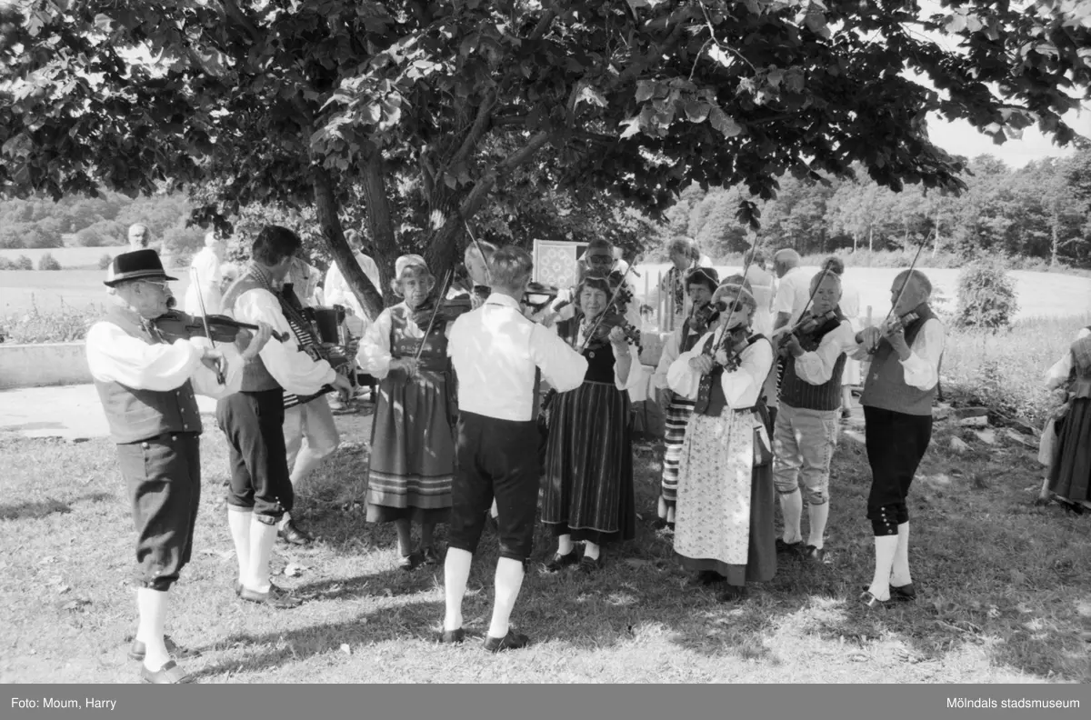 Hembygdsdag på Långåker i Kållered, år 1984. Hällesåkers spelmanslag.