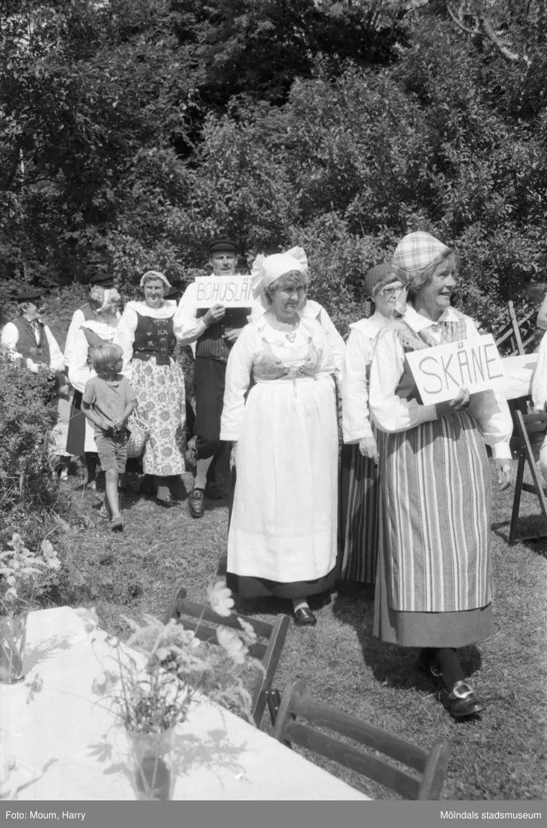 Hembygdsdag på Långåker i Kållered, år 1984. "Skåne"= Karin Gustafsson, till vä. om henne Majken Westberg, Kållered.