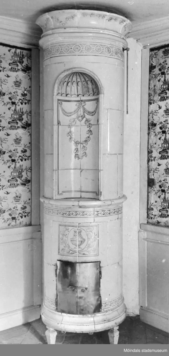 Rund kakelugn i Gästsängkammaren, även kallad "Kinesen". Gunnebo slott, 1930-tal.