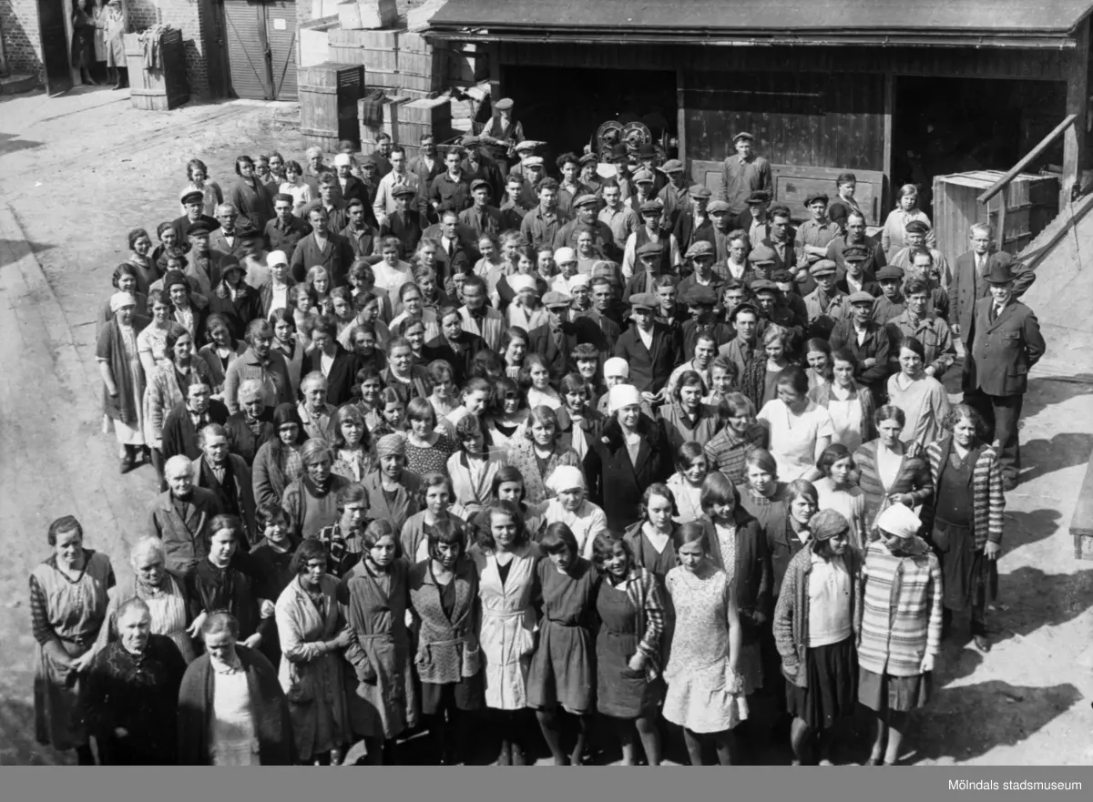 Krokslätts fabrikers arbetsstyrka uppställda på gården, 1928.
